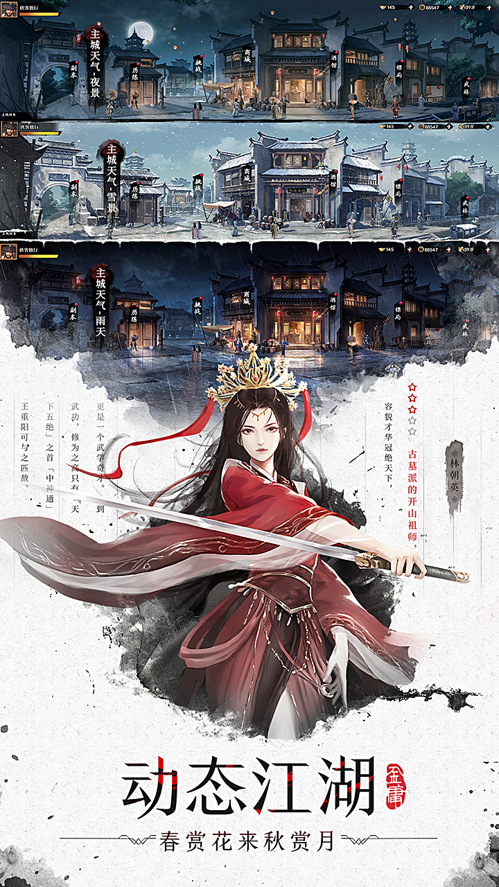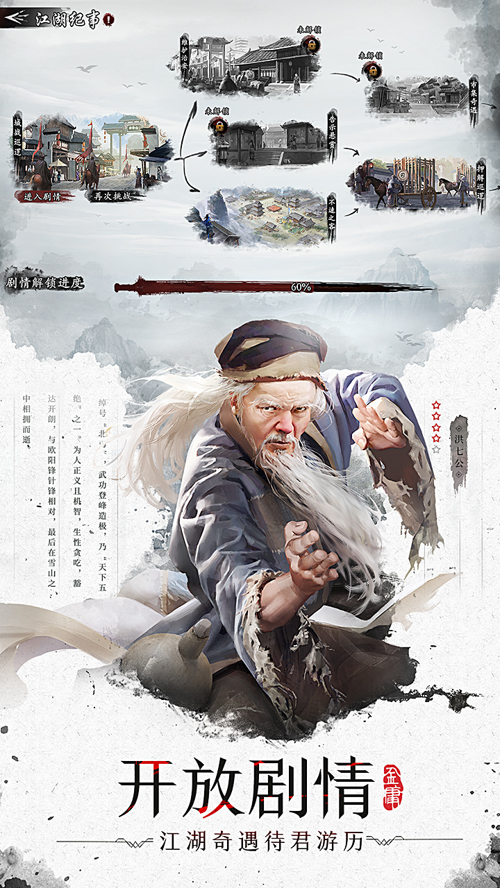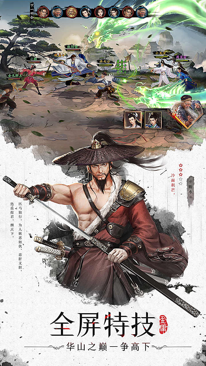 国韵水墨写意画风,经典剧情深度还原,三层动效,满屏大招,栩栩如生勾画动态江湖。